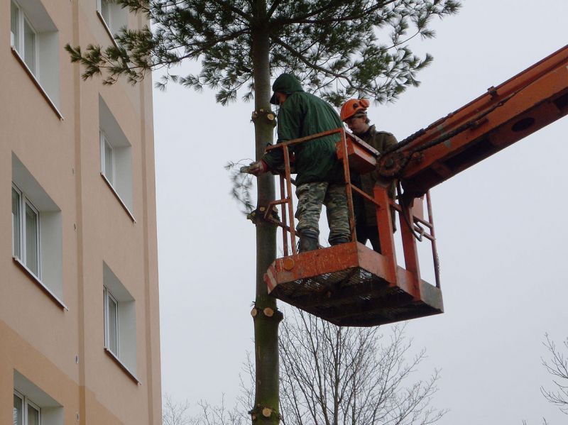 Provádíme kácení stromů a keřů. Kácení problematických stromů (kde není možné strom položit vcelku) provádíme také za pomoci vysokozdvižné plošiny.
